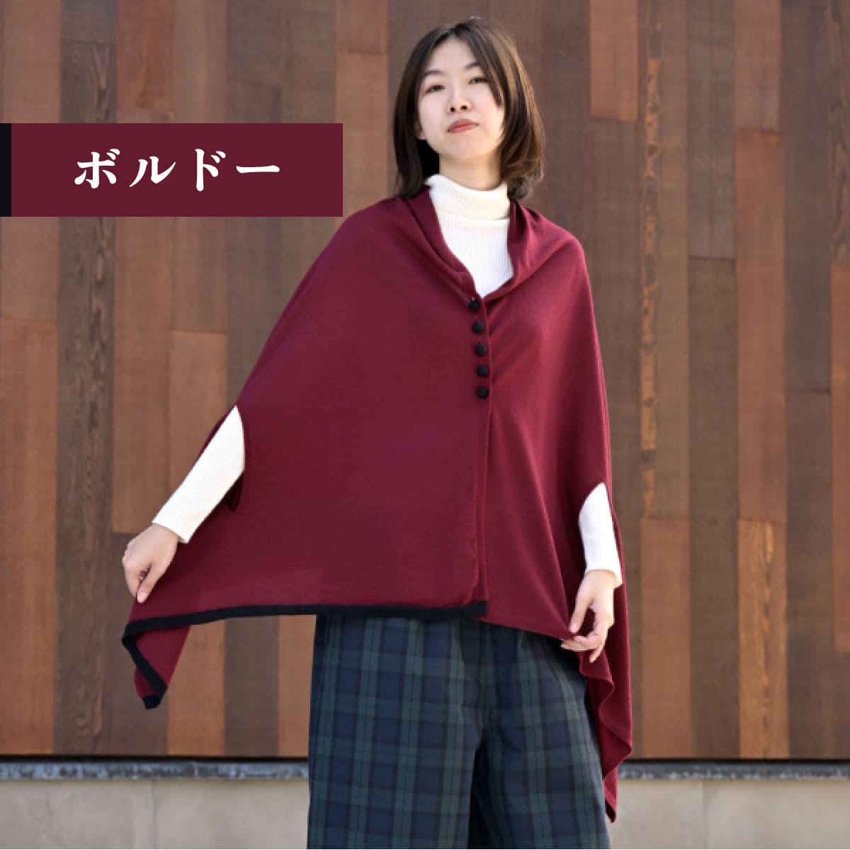 色とりどりの木の実をイメージした、ころんとかわいい「くるみボタン」付きのmino。前をしっかり留められるので、両手が使えてとっても便利です。