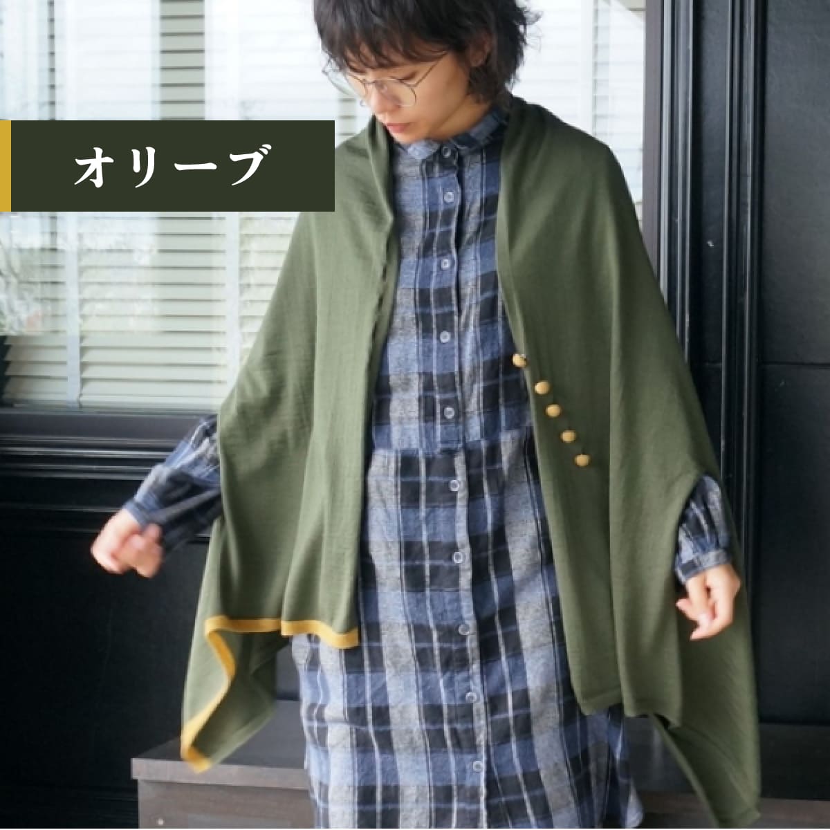 羽織っても首に巻いても、右端に入っているアクセントカラーがちらりと見え、大人のセンスを感じさせます。