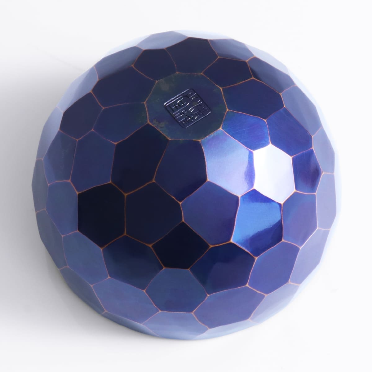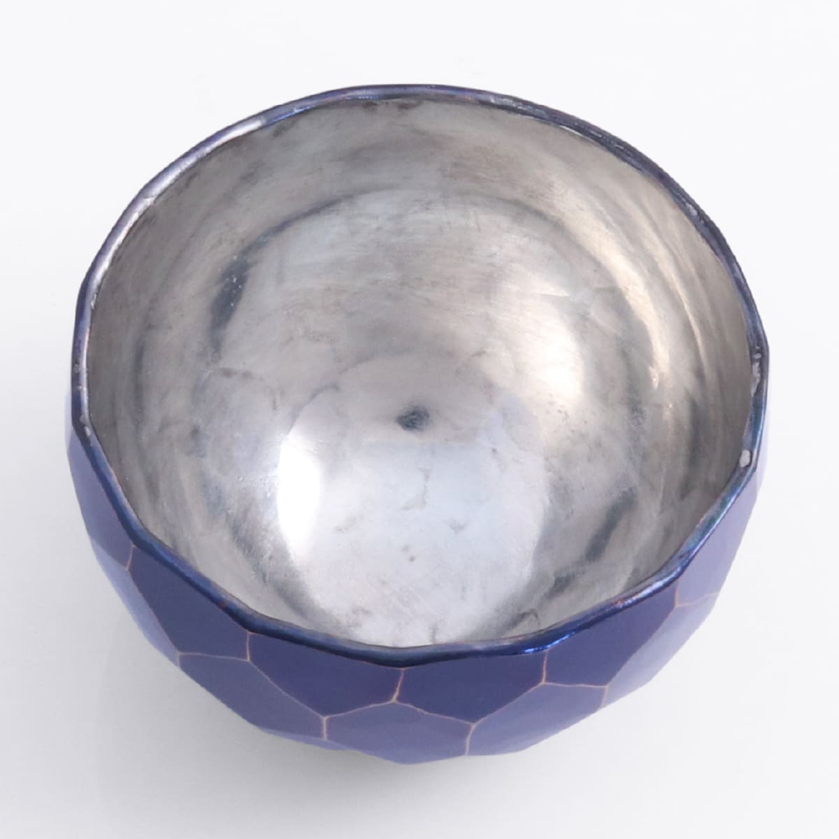 [清雅堂]鎚起銅器|酒器|亀甲紋「ぐい呑み」青藍色(口径60mm、容量64ml)
