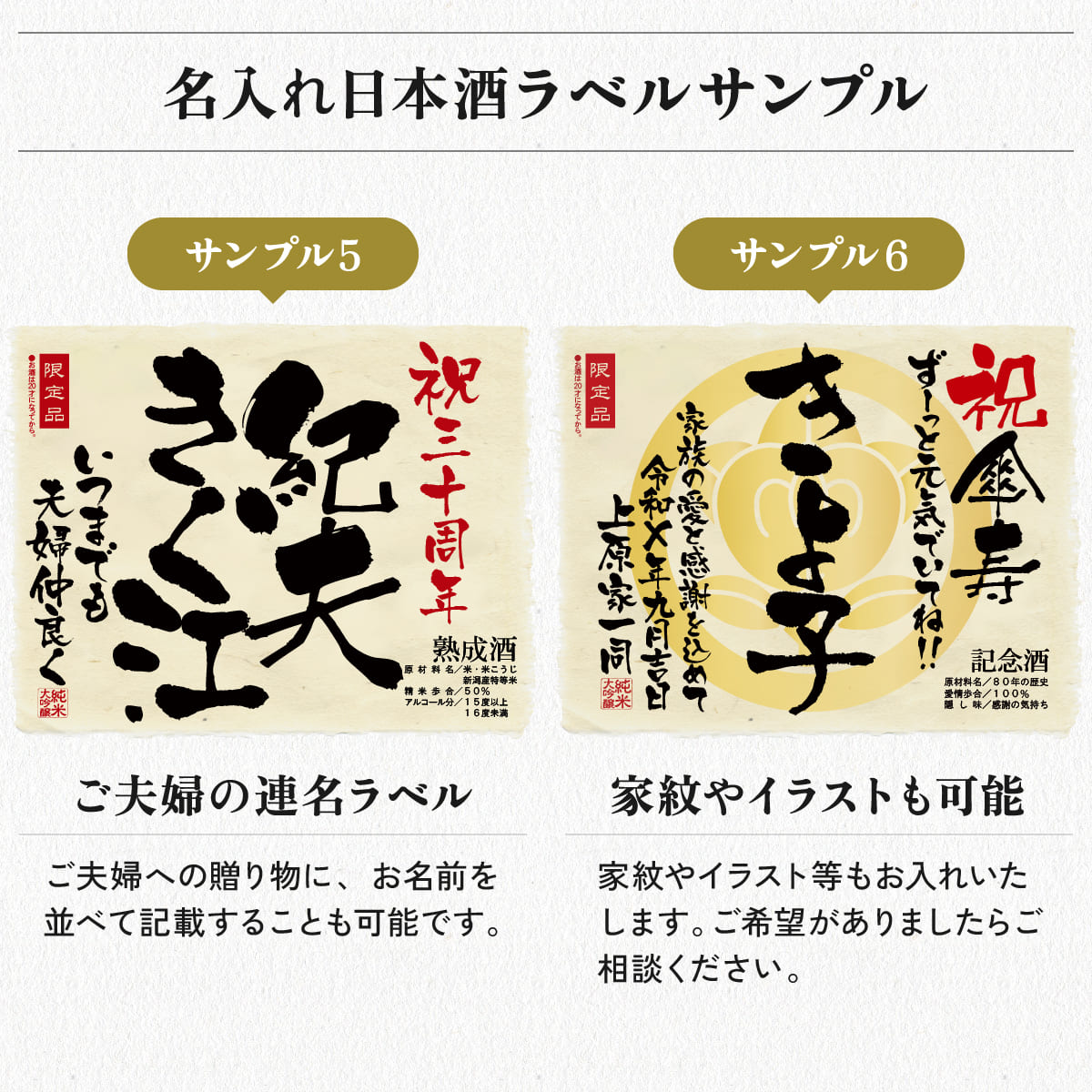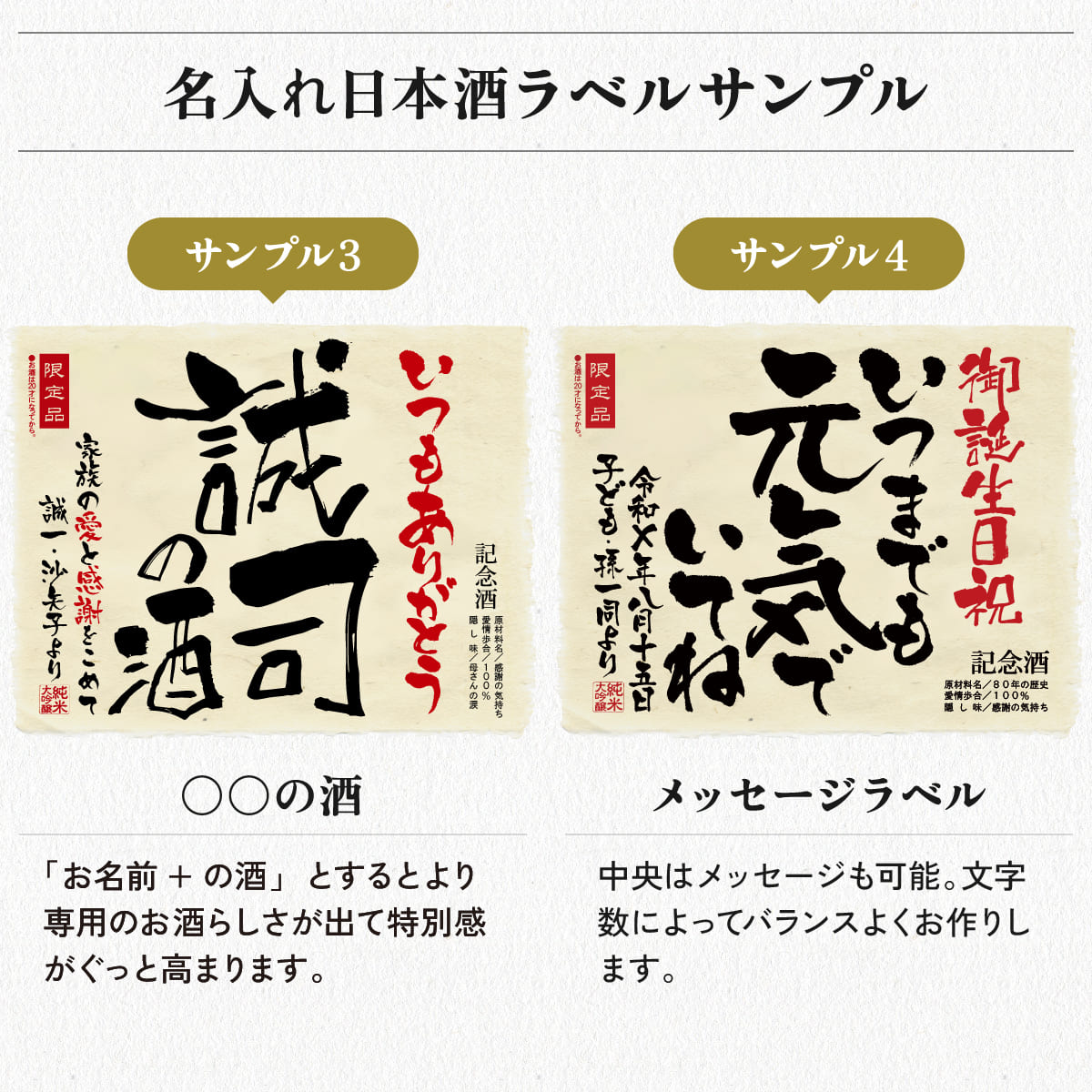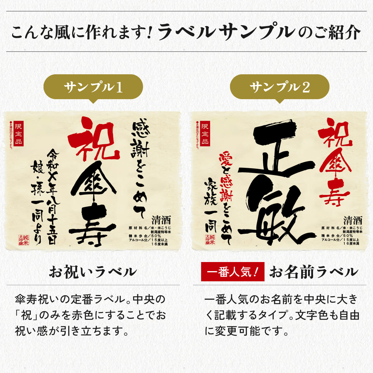 名入れ日本酒720mlのラベルサンプル ラベルサンプルをもっと見る